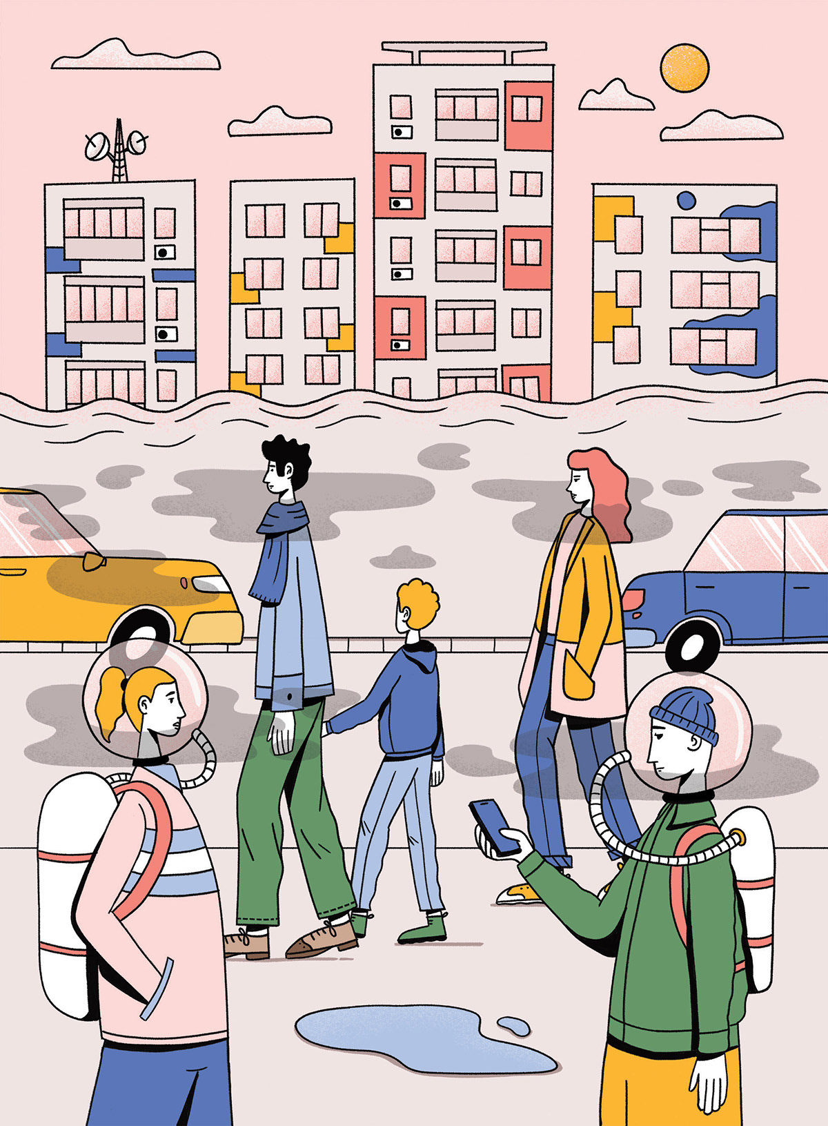 Illustration created for Glamour Romania for an article on air pollution and ways in which we can help improve air quality.