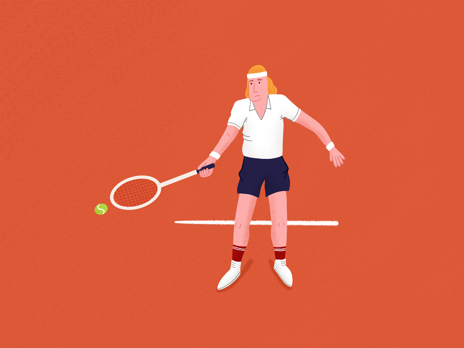 Trying out various postures in this illustration of tennis players from the 1980s.
