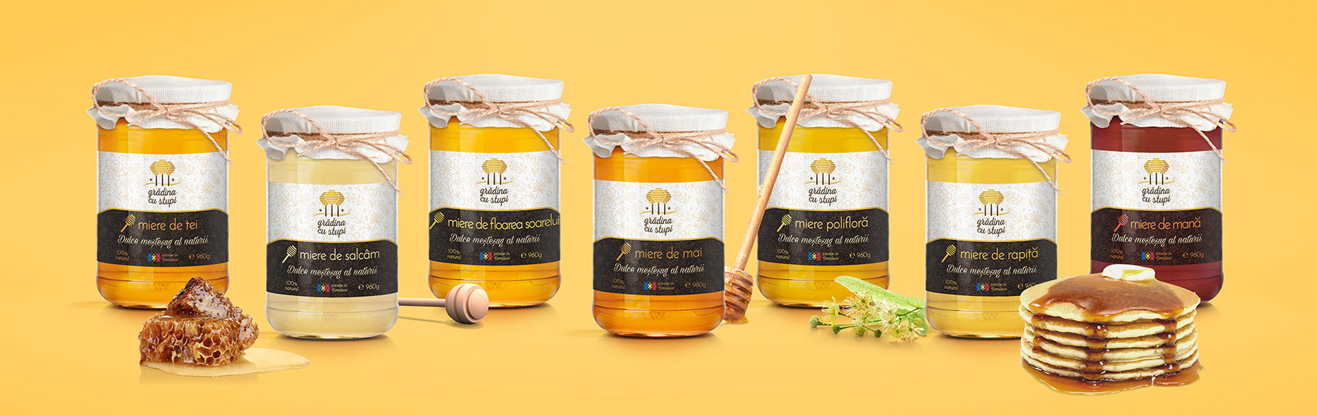 After creating their new visual identity, the next step was to apply it to their whole product range, which includes 7 types of honey, 4 energizing mixes based on various combinations of honey and other bee products + many more healthy goods, such as pollen, propolis, honeycomb and royal jelly.