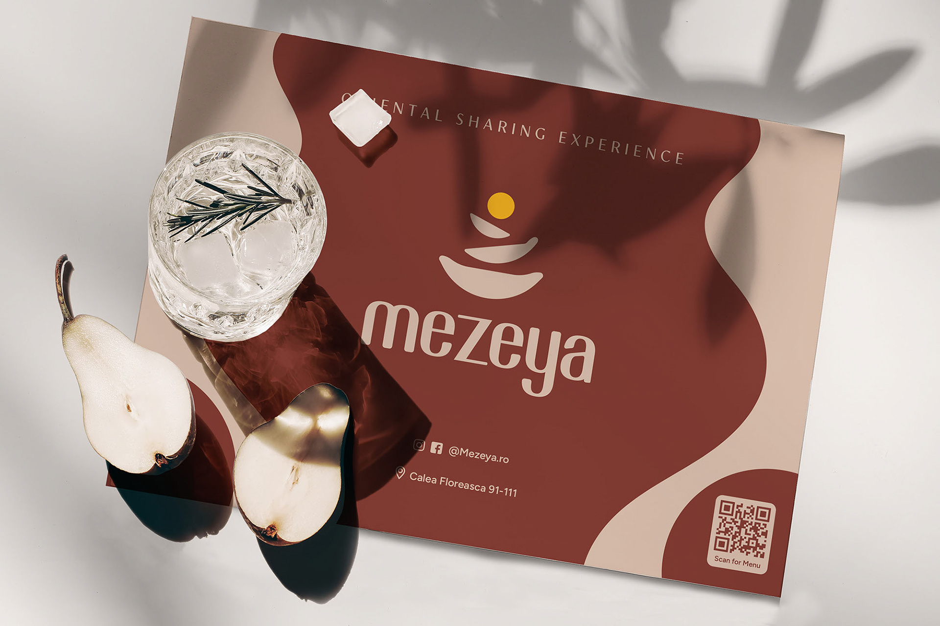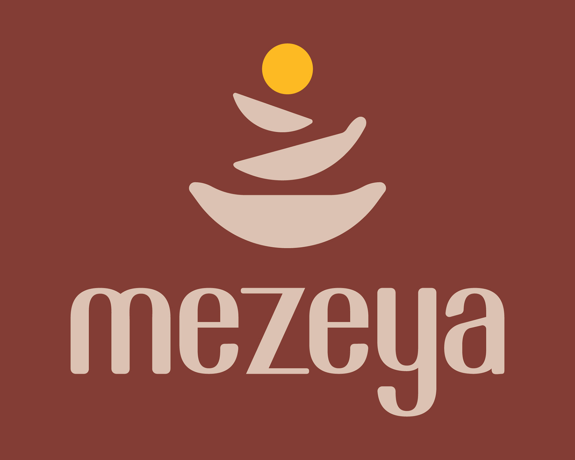 Mezeya is a Middle Eastern restaurant in Bucharest, built around a food-sharing concept. I created the visual identity, with a logo based on overlapping plates to suggest sharing and togetherness, topped by a sun element that adds a sense of warmth and closeness. The overall design is clean and friendly, supporting a relaxed, communal dining experience.