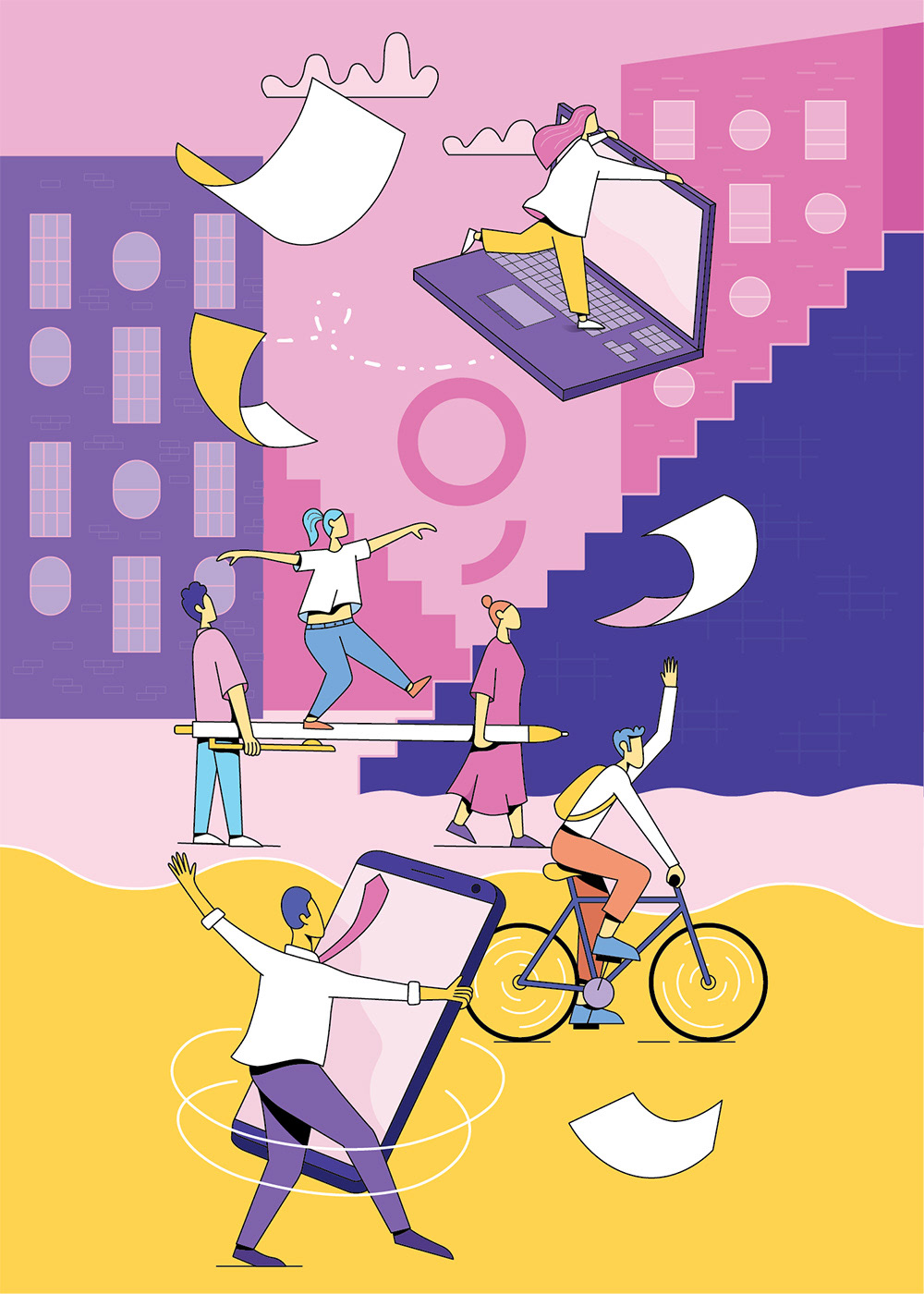 Friday, 6PM, when everyone leaves the office and weekend officially begins. People are dancing and having fun on their way back home.