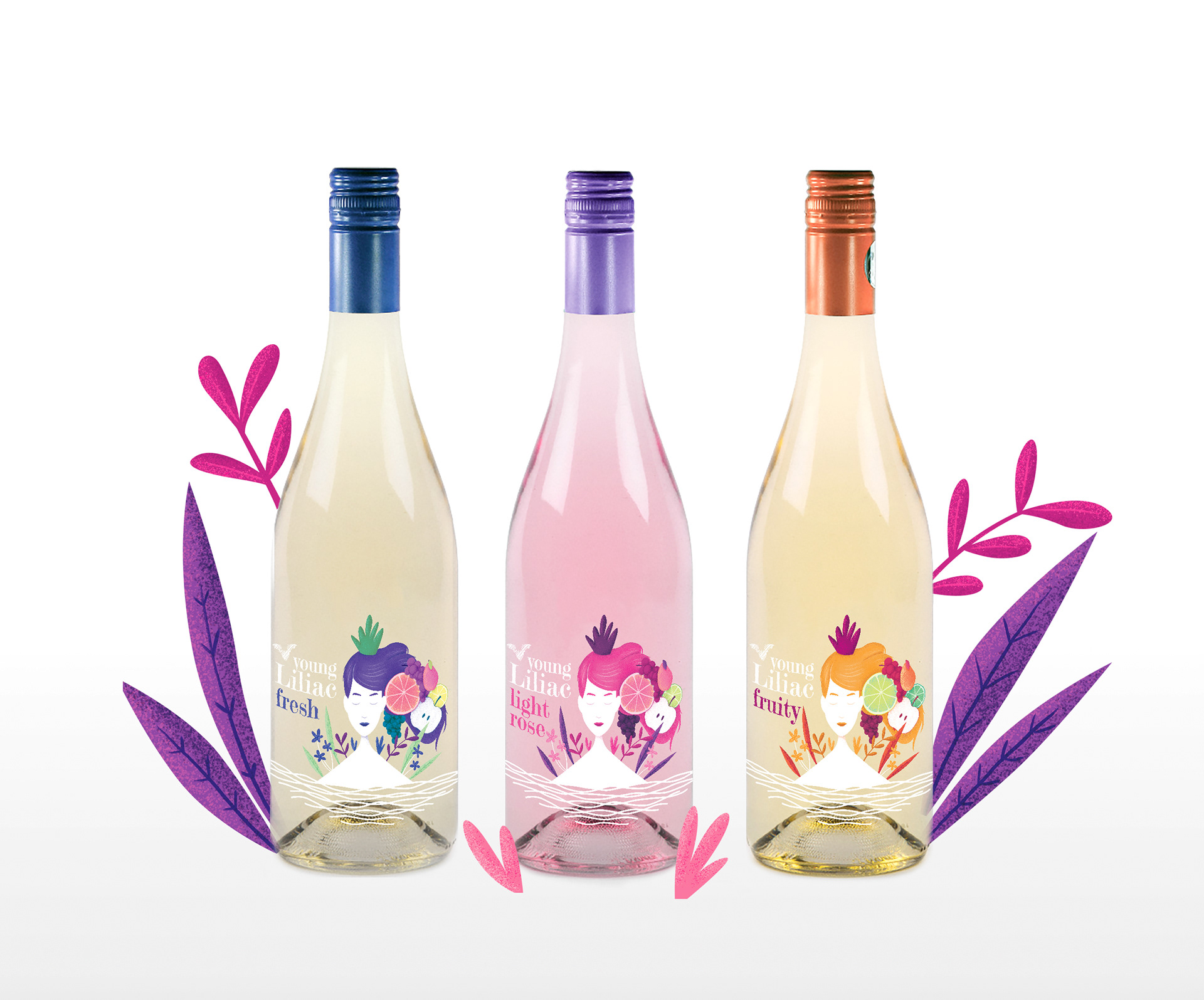 This illustration was created as a proposal for young.Liliac's wine bottle packaging contest, Label the Unlabeled.